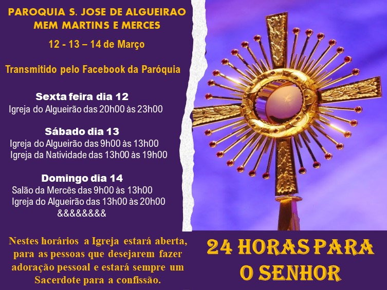 Esta sexta feira e sábado que precedem o IV Domingo da Quaresma, tem lugar a iniciativa “24 horas para o Senhor”. Na Bula Misericordiae vultus, de abril de 2015, o Papa Francisco, apela a que esta iniciativa seja implementada em todas as dioceses.