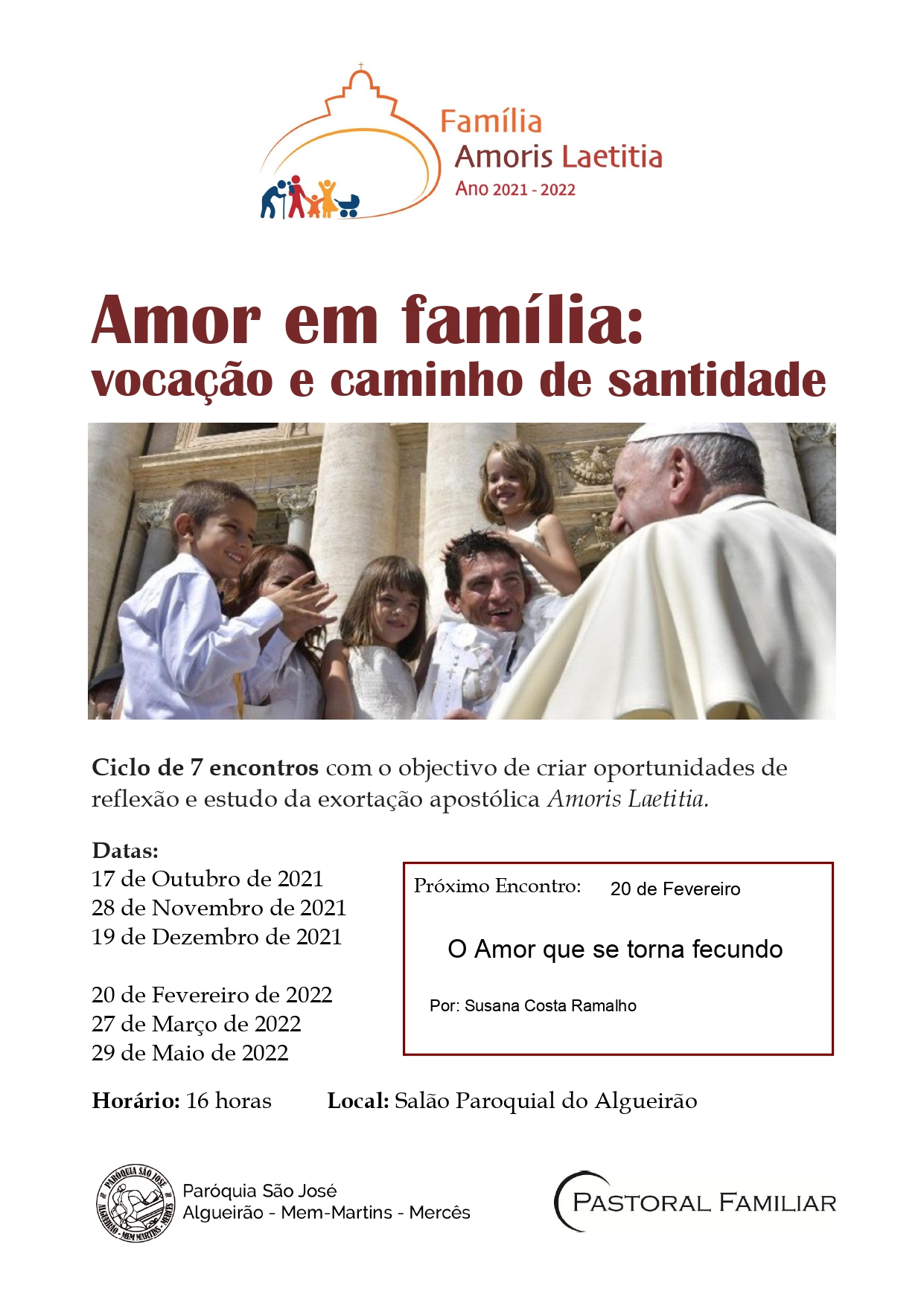 Ciclo de encontros com o objectivo de criar oportunidades de reflexão e estudo da exortação apostólica Amoris Laetitia.