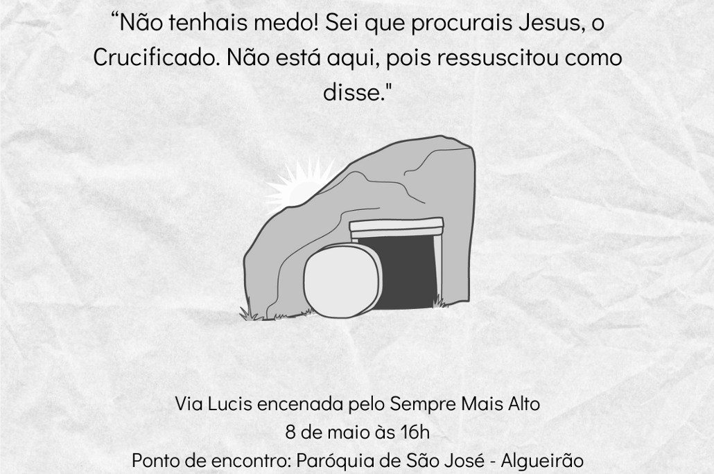Home › Blog › Via Lucis – 08 de MaioVia Lucis – 08 de Maio 4 Maio, 2022 Vitor Várzea No comments Vem celebrar conosco a alegria da Ressurreição e Ascensão do Senhor. Domingo às 16h contamos contigo! Categories: Sem categoria