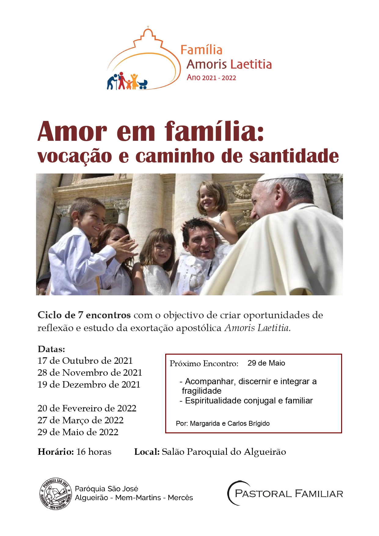 Ciclo de encontros com o objectivo de criar oportunidades de reflexão e estudo da exortação apostólica Amoris Laetitia.