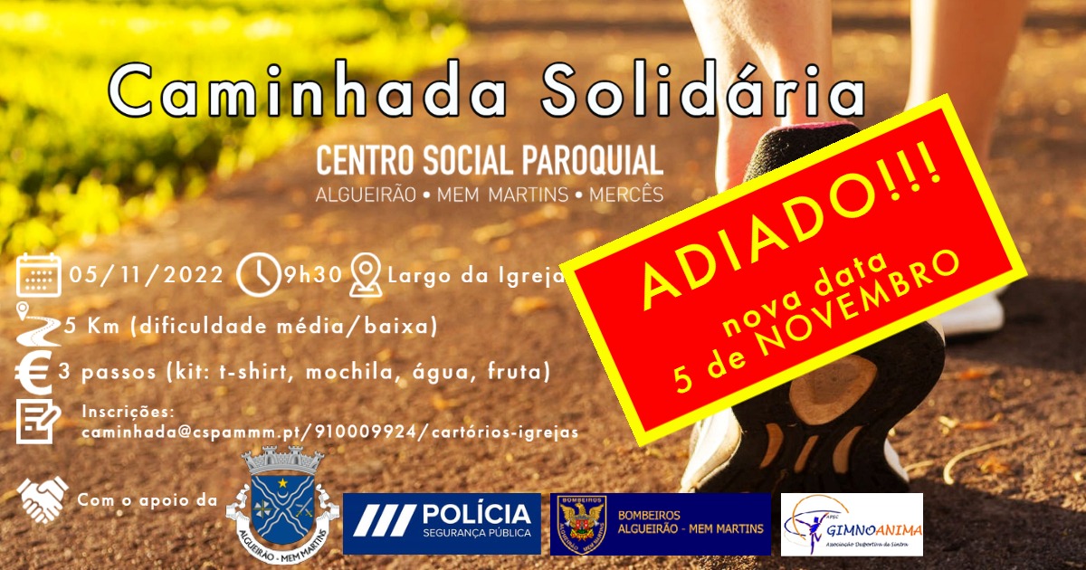 Lamentamos pelo inconveniente e esperamos-vos com a mesma energia no dia 5/11 às 9h30 no Centro Social Paroquial de Algueirão Mem-Martins Mercês.