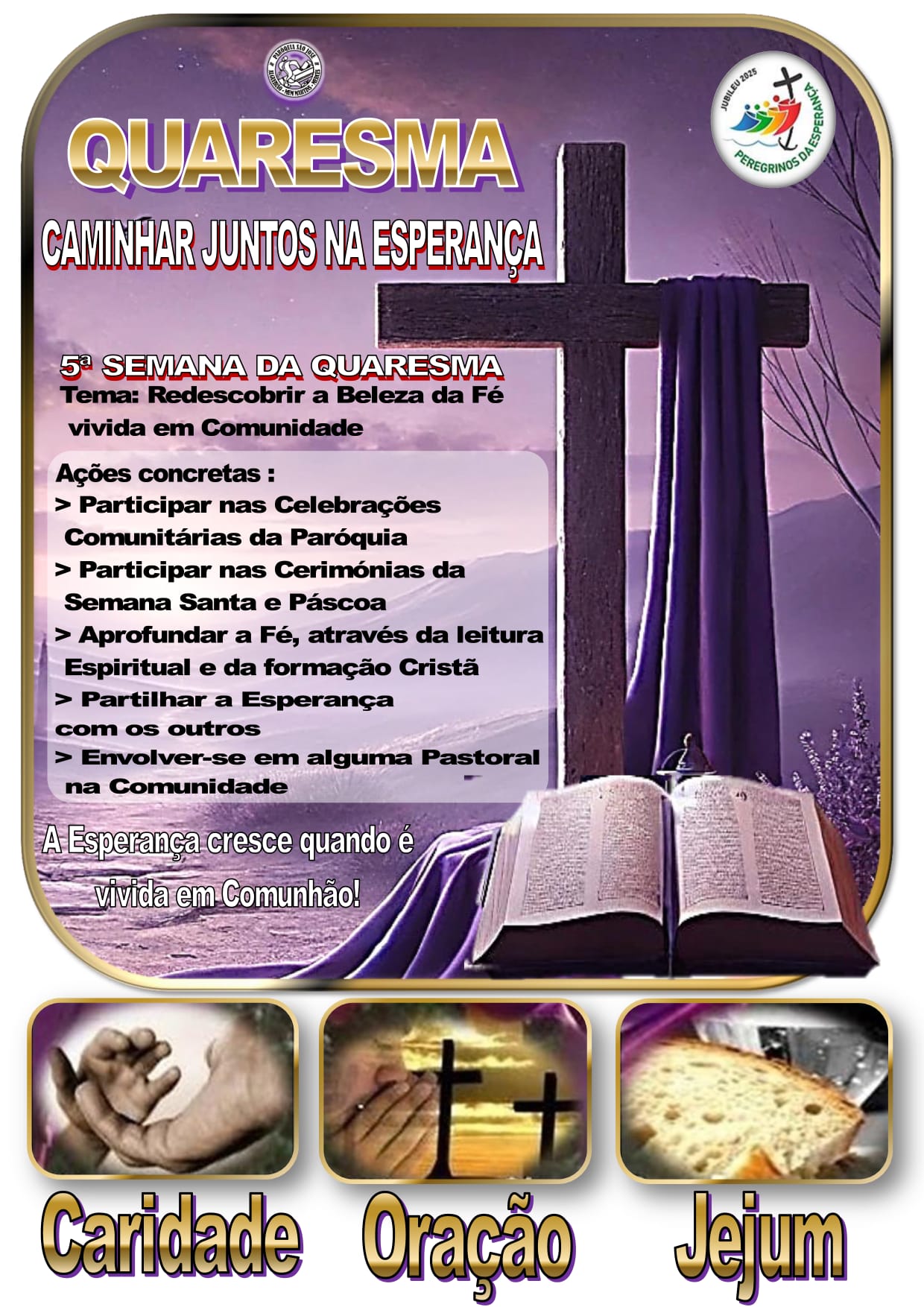 No nosso caminho quaresmal, a 5ª semana é marcada pelo tema: “Redescobrir a Beleza da Fé vivida em Comunidade”. A fé ganha uma dimensão ainda mais bela quando é vivida em comunhão com os outros. Assim, também a esperança se torna mais forte quando é partilhada com os outros. Quando vivemos em comunhão – seja com a família, amigos ou comunidade encontramos apoio, conforto e força para enfrentar os desafios da vida. O simples facto de partilhar medos e alegrias com alguém pode renovar a esperança e trazer