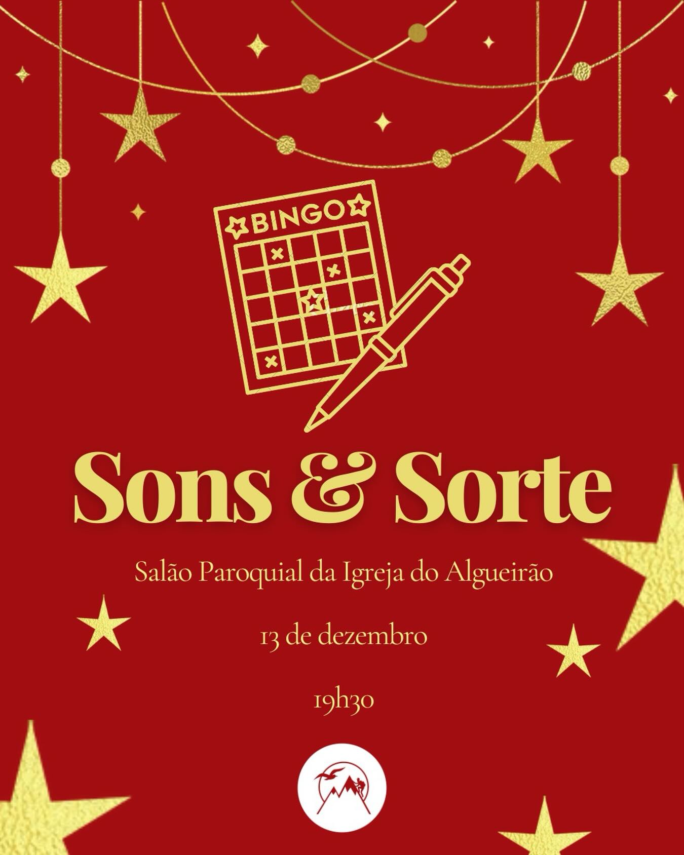 Dia 13 de dezembro, junte-se a nós para uma noite de convívio com jogos, comida e muita animação! Contamos consigo às 19h30 no Salão Paroquial da Igreja do Algueirão. Mais informações nas redes sociais do grupo Sempre Mais Alto
