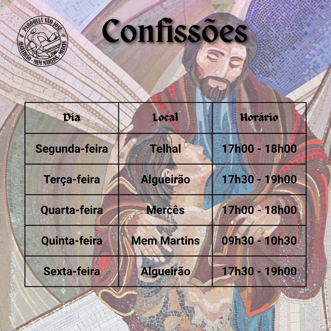 A equipa pastoral organizou os horários e locais das confissões, de forma a facilitar o acesso de todos a este sacramento. As confissões realizam-se ao longo da semana, em diferentes locais da paróquia.