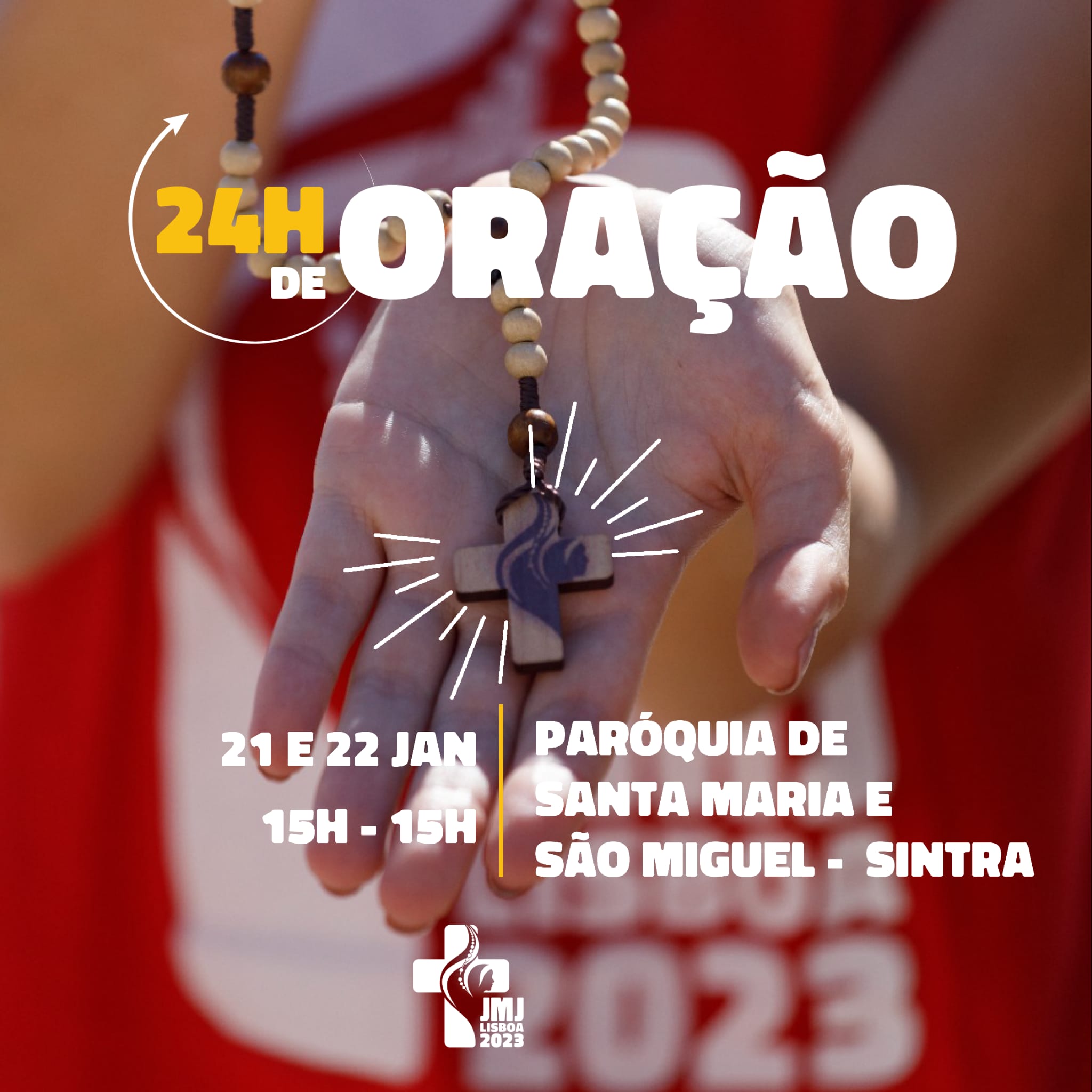Relembramos que este Sábado estaremos em oração pela JMJ. 24H seguidas. A cada paróquia da vigararia de Sintra irá calhar um momento específico e nós somos chamados a rezar entre as 16h30-19h00. ?