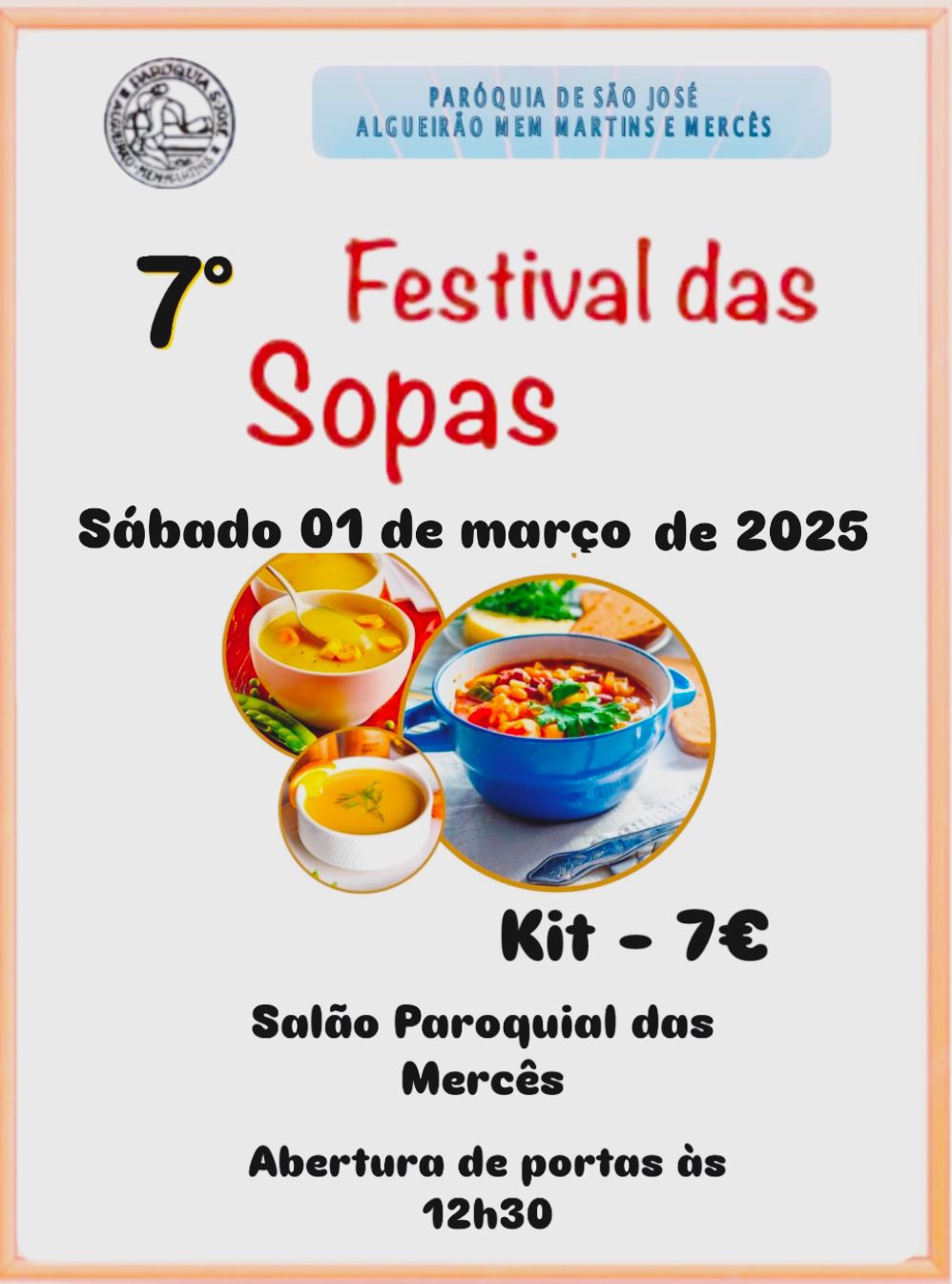 No âmbito de angariação de fundos para a construção da futura igreja, o Núcleo das Merces organiza mais um Festival de Sopas, já no próximo dia 1 de Março. Venha almoçar connosco e ajude-nos a construir o nosso sonho.