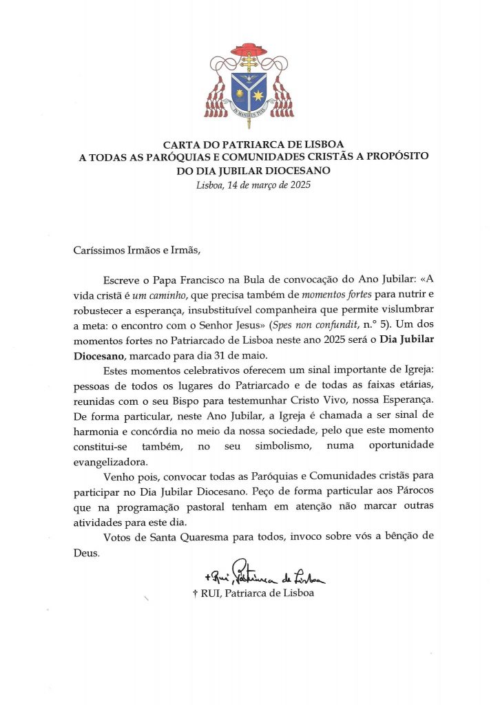 Carta do Patriarca de Lisboa a propósito do Dia Jubilar Diocesano