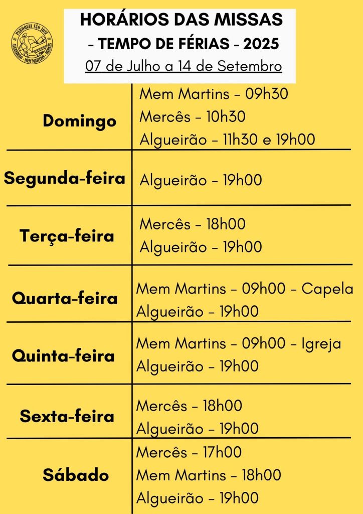 Sábado: 17h00 (Salão Paroquial das Mercês)
